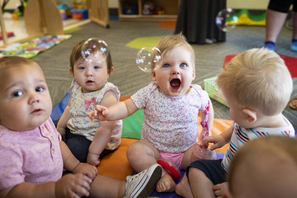 Our infant teachers use baby sign language to teach children how to communicate before verbal skills develop. Specials like weekly gym and music classes give babies more opportunities to explore the world around them.
